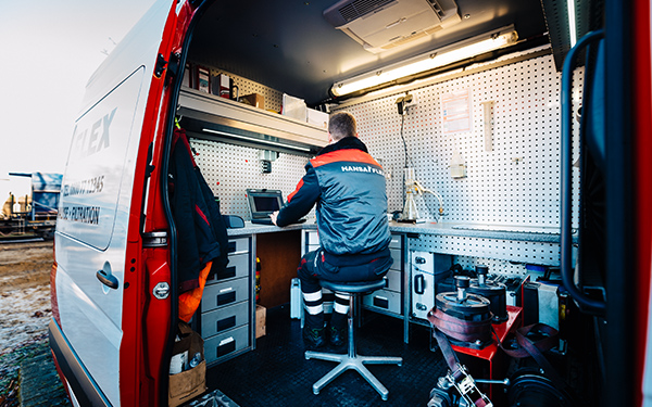 O HANSA-FLEX Fluid Service realiza análises de óleo diretamente no local, realiza a limpeza do óleo ou a substituição completa do fluido e aconselha sobre todos os aspetos da manutenção de fluidos...