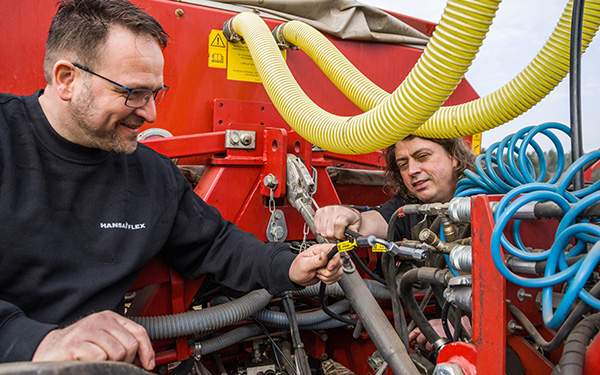 Os técnicos da HANSA-FLEX fabricam mangueiras hidráulicas prontas para instalar de acordo com os dados X-CODE ou suas amostras em mais de 450 filiais em toda a Alemanha. As mangueiras são prensadas, testadas e limpas profissionalmente. Os mais altos padrões de qualidade se aplicam a essas mangueiras hidráulicas montadas. O resultado é uma conexão à prova de vazamentos entre a mangueira hidráulica e o terminal prensado, o que garante segurança no uso mesmo em altas pressões.
