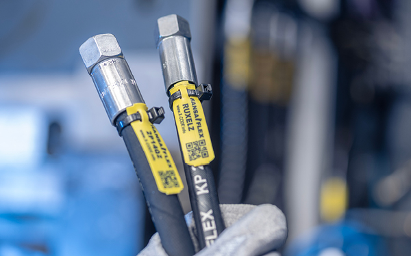 As peças necessárias podem ser identificadas de forma rápida e confiável com o HANSA-FLEX X-CODE. O código de seis dígitos fica permanentemente fixado nas mangueiras e é fácil de ler.