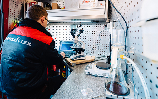 Os contaminantes no fluido podem ter consequências graves. Por isso, o cuidado meticuloso com o óleo é fundamental para garantir uma operação sem falhas dos sistemas hidráulicos. Os especialistas em fluidos da HANSA-FLEX o apoiam em tudo, desde a análise do óleo até a limpeza e o monitoramento contínuo.